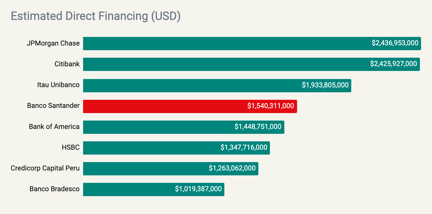 Na atualização da base de dados da Stand, o Santander se destacou como o maior financiador europeu de petróleo e gás na Amazônia. O banco espanhol destinou mais de US$ 1,5 bilhão ao setor entre 2009 e 2023, tornando-se também o quarto maior financiador a nível mundial. O Brasil é o principal mercado do banco, maior do que a Espanha.