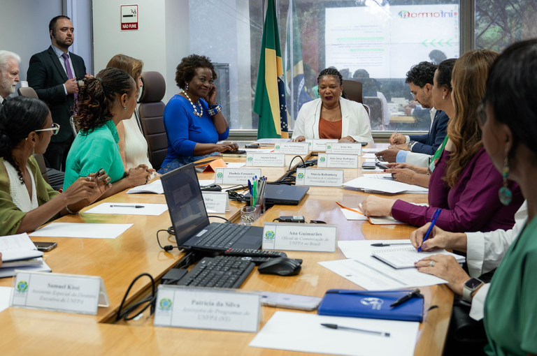 O encontro ocorreu na sede do Ministério da Cultura (MinC) e contou com a participação dos membros do UNFPA, como a diretora Regional do órgão para América Latina e o Caribe, Susana Sottoli; a representante do UNFPA no Brasil, Florbela Fernandes; o assistente Especial da Diretora Executiva, Samuel Kissi; e a representante auxiliar do UNFPA no Brasil, Júnia Quiroga.