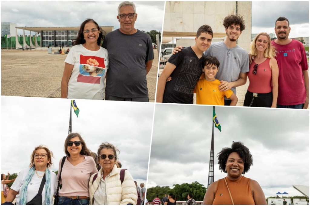 CONSCIÊNCIA – Vinda de Goiânia, a professora e funcionária pública Marta Luíza viajou com o esposo, Junior Rabelo, para a celebração. Ela destacou a difícil recuperação do país após os episódios de invasão e vandalismo. “A recuperação física já é todo um trabalho, um esforço consciente em torno do que representam esses símbolos na Praça dos Três Poderes, mas a recuperação política e social é ainda mais difícil e lenta”, disse Marta.
