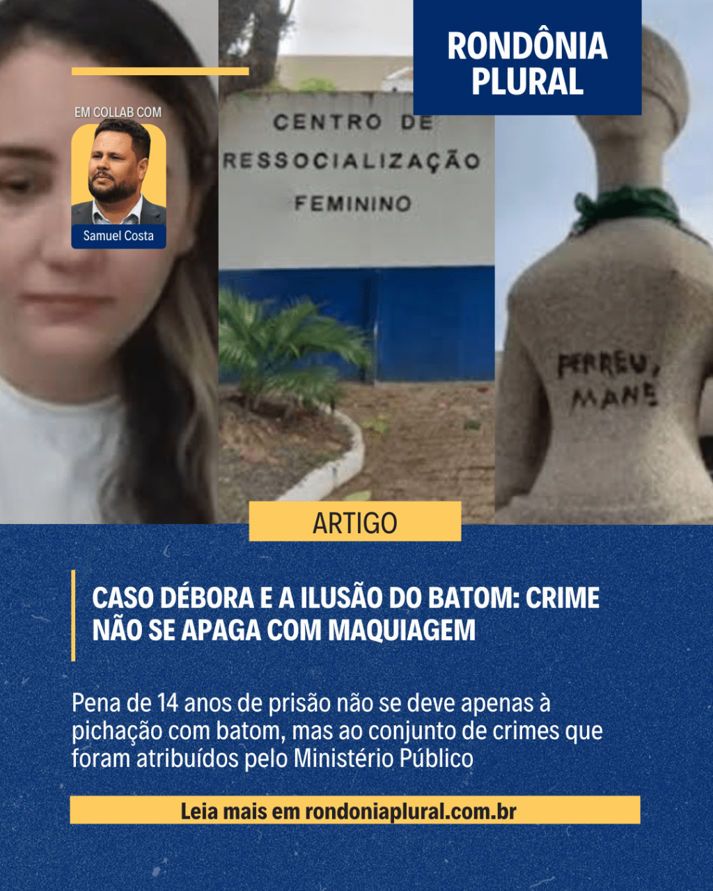 Conhecida por vandalizar a estátua A Justiça, em frente ao Supremo Tribunal Federal, Débora foi condenada a 14 anos de prisão e está encarcerada há mais de dois anos. Sua pena elevada não se deve apenas à pichação com batom, mas ao conjunto de crimes que lhe foram atribuídos pelo Ministério Público.