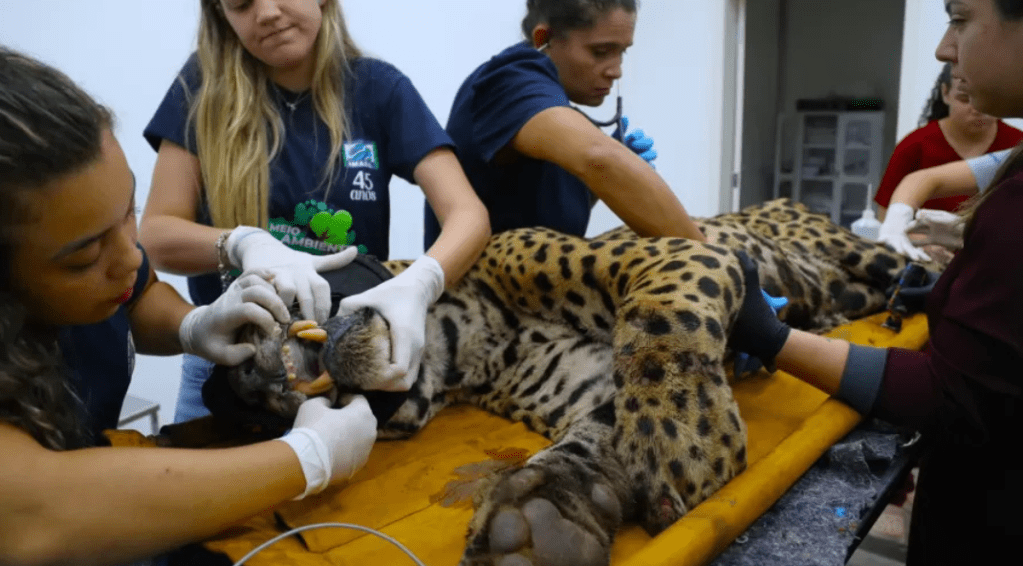 Após ser capturada, a onça foi transferida provisoriamente para o Centro de Reabilitação de Animais Silvestres (CRAS/IMASUL), onde passa por avaliações de saúde e comportamento.
