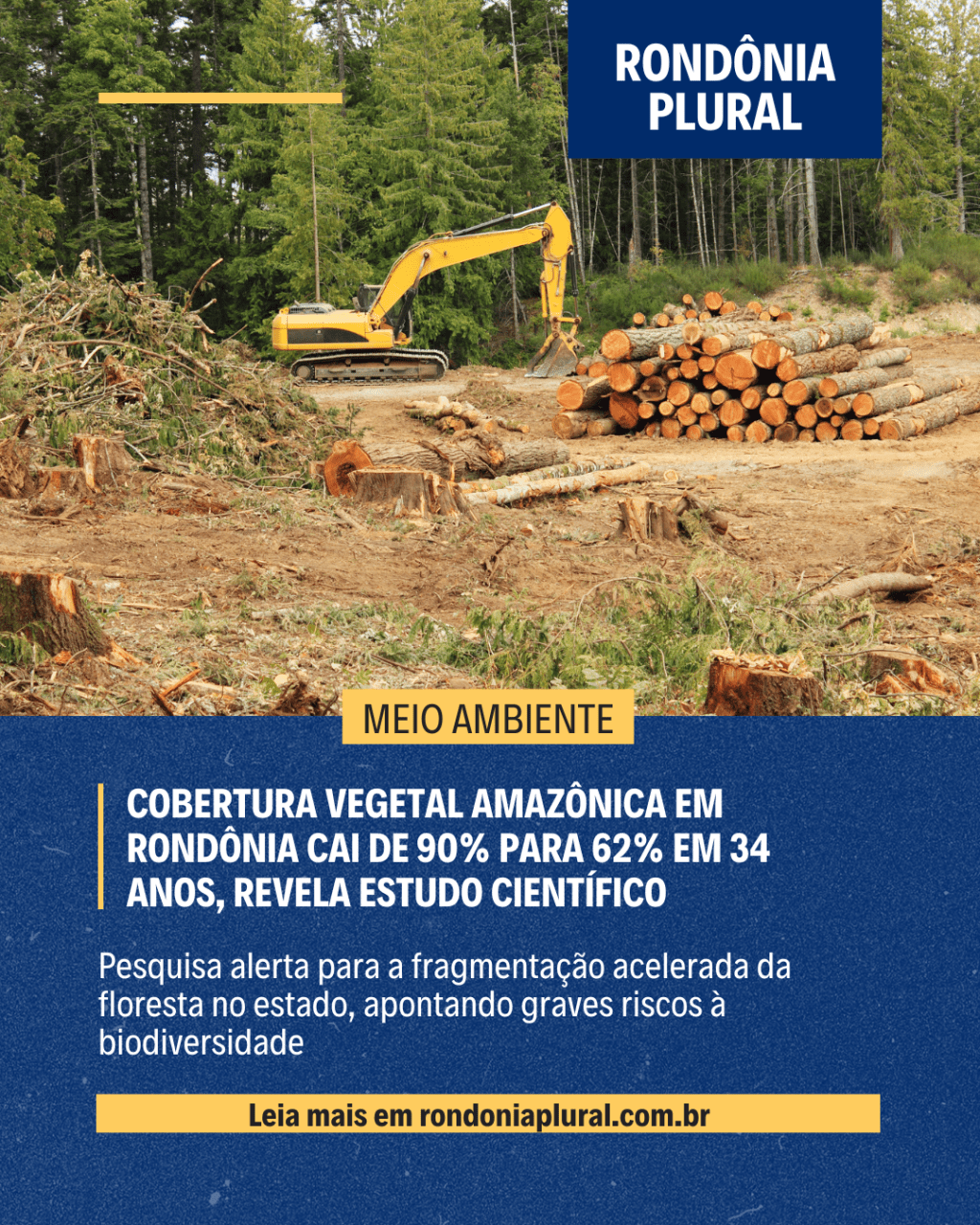 A cobertura vegetal da Amazônia em Rondônia sofreu uma queda alarmante em um período de 34 anos. De acordo com um estudo publicado na revista científica Environmental Conservation, a vegetação nativa do estado caiu de 90% em 1986 para apenas 62% em 2020.
