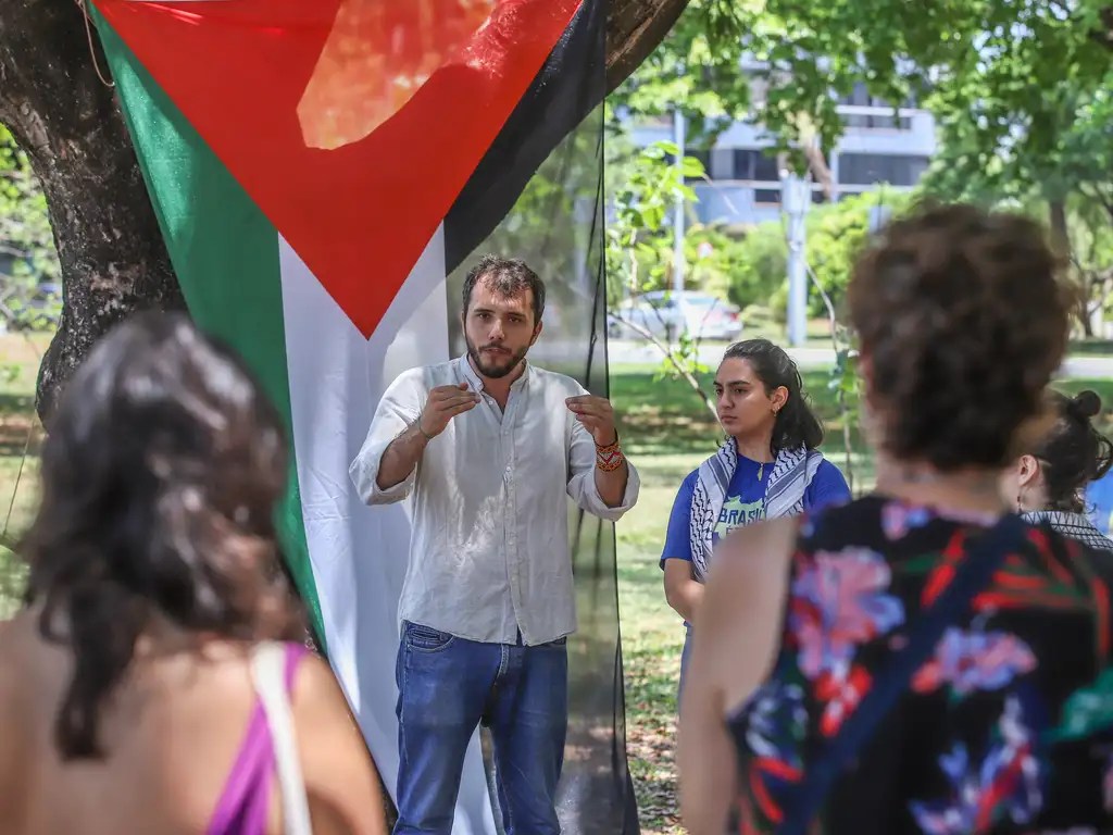 Na verdade, o Thiago desde o início entrou no ativismo social já relacionado com questões internacionais. Ele atua pela causa Palestina desde 2005, que foi quando ele começou a ser mais ativo e ter contato com organizações. Em 2023, foi só uma intensificação, porque é uma situação de genocídio é que demanda mesmo mais atenção.
