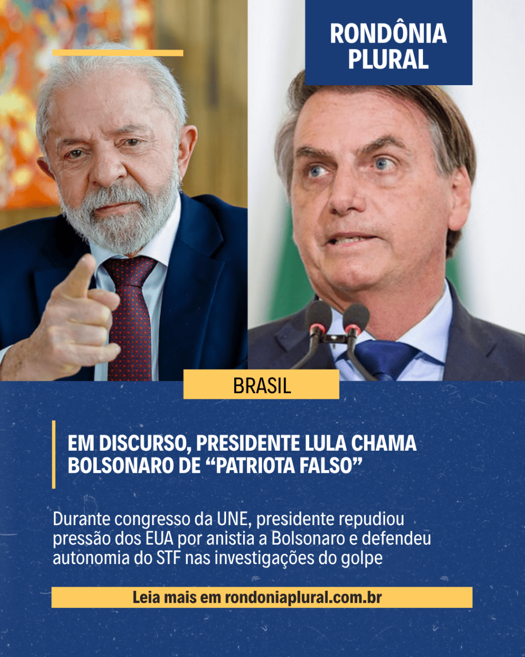 Em um discurso diante de milhares de estudantes, Lula repudiou o aumento de tarifas comerciais imposto por Trump ao Brasil e classificou como “chantagem” a tentativa de vincular o fim das taxas à anistia de Bolsonaro, atualmente investigado por tentativa de golpe de Estado.