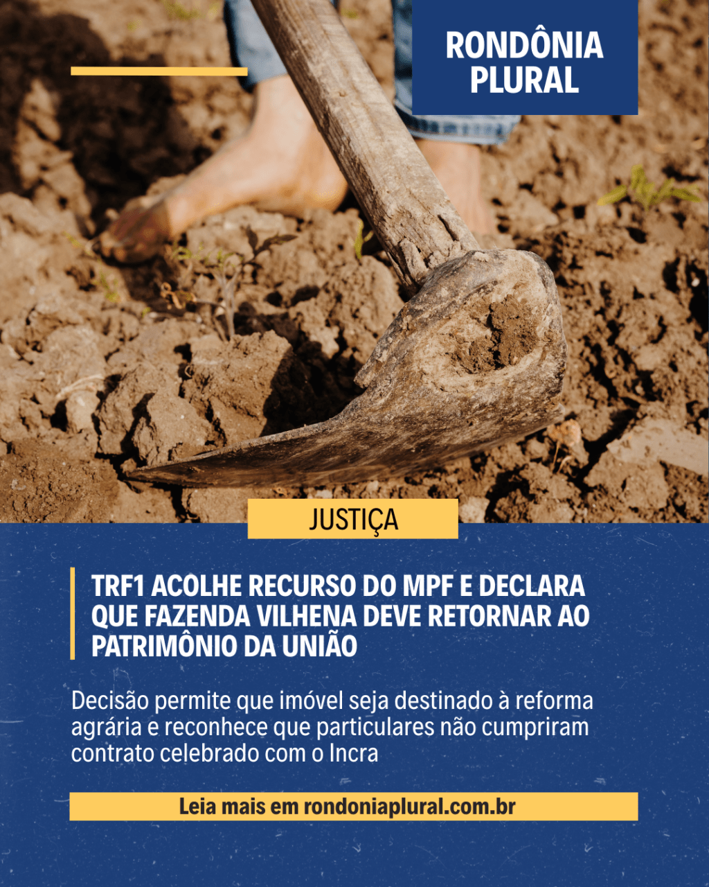 A 5ª Turma do Tribunal Regional Federal da 1ª Região (TRF1) acolheu, por unanimidade, recurso do Ministério Público Federal (MPF) e do Instituto Nacional de Colonização e Reforma Agrária (Incra) e declarou que o imóvel conhecido como Fazenda Vilhena deve retornar ao patrimônio público da União.