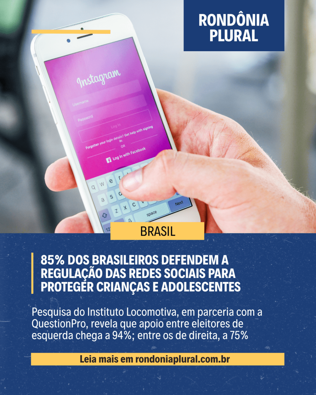 Pesquisa inédita do Instituto Locomotiva, em parceria com a QuestionPro, revela que 85% da população brasileira considera importante que exista uma legislação específica para proteger crianças e adolescentes nas redes sociais, o que equivale a 139 milhões de brasileiros. Esse apoio é ainda mais expressivo entre os eleitores de esquerda, onde chega a 94%, mas permanece majoritário entre os de direita, com 75%.