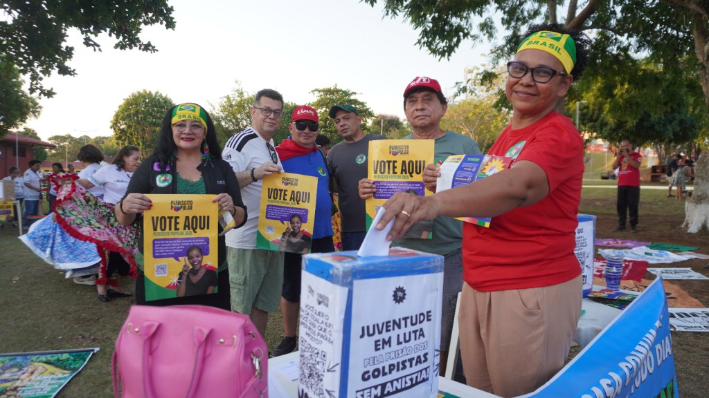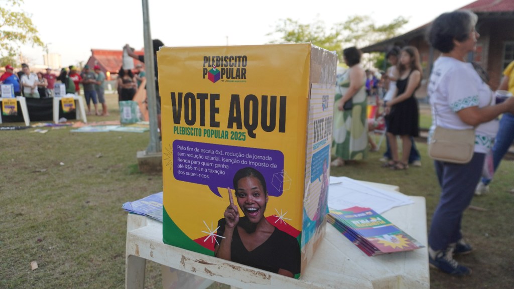 Durante o 31º Grito dos Excluídos e Excluídas, realizado no último domingo (7) em Porto Velho, o público presente no ato teve a oportunidade de participar do Plebiscito Popular 2025, que propõe a redução da jornada de trabalho sem corte de salários, o fim da escala 6×1 e a taxação dos super-ricos.