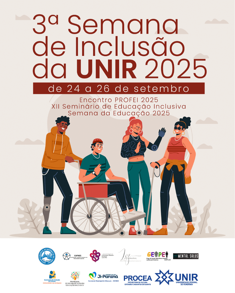 A Universidade Federal de Rondônia (UNIR) realizará entre os dias 24 e 26 de setembro, a 3ª Semana de Inclusão da UNIR, com uma série de atividades acadêmicas, educativas e culturais promovidas em parceria com outras instituições.
