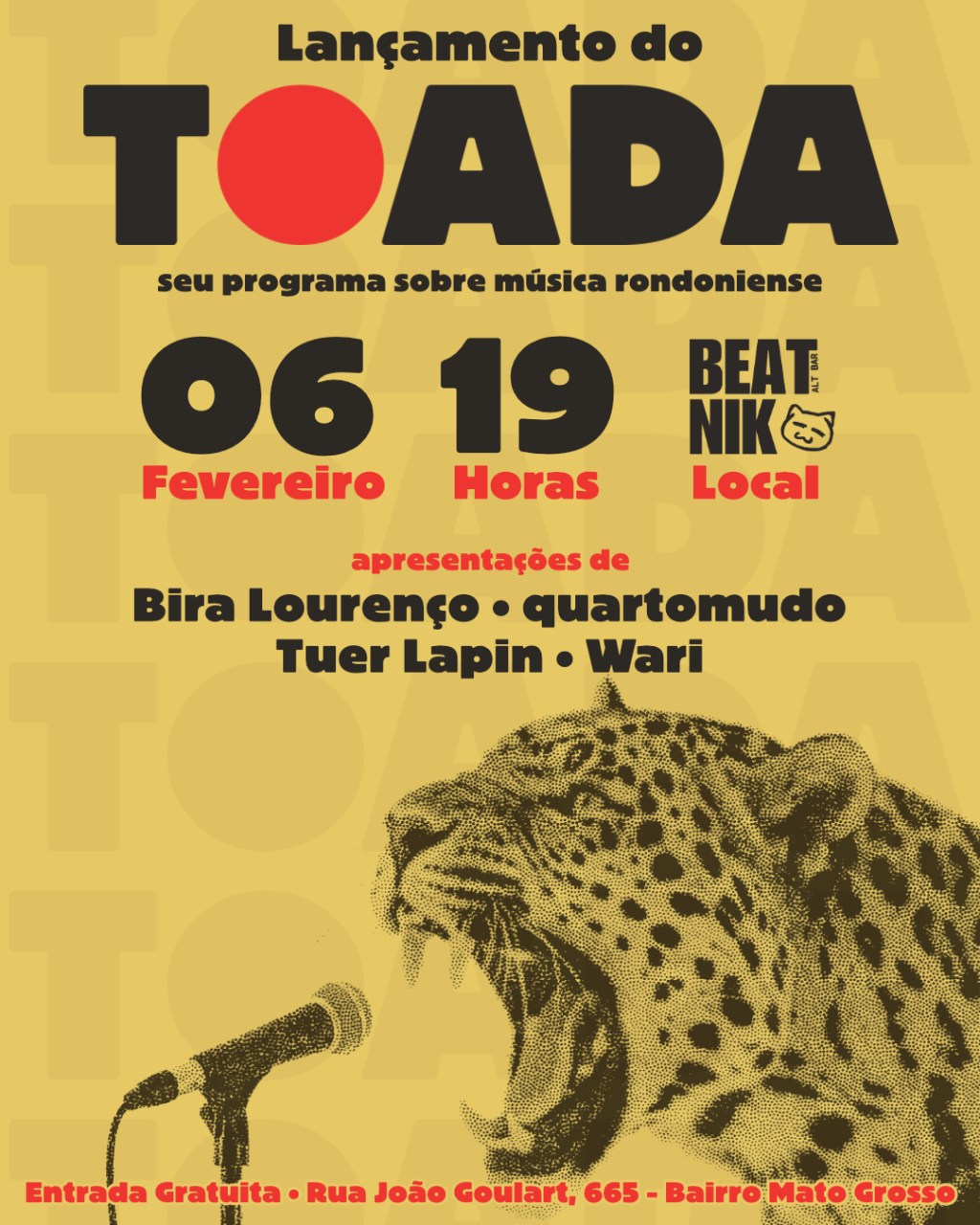 Com o objetivo de romper o “deserto de notícias” que cerca a produção artística da Amazônia rondoniense, o projeto de extensão ‘Toada’ promove, nesta sexta-feira (6), o evento de lançamento de sua primeira temporada. A festa gratuita ocorre no bar Beatnik, localizado na Rua João Goulart, 665, bairro Mato Grosso, zona Sul de Porto Velho. A iniciativa, desenvolvida de forma coletiva por estudantes de Jornalismo da Universidade Federal de Rondônia (UNIR), une entrevista e performance musical em um novo formato audiovisual.